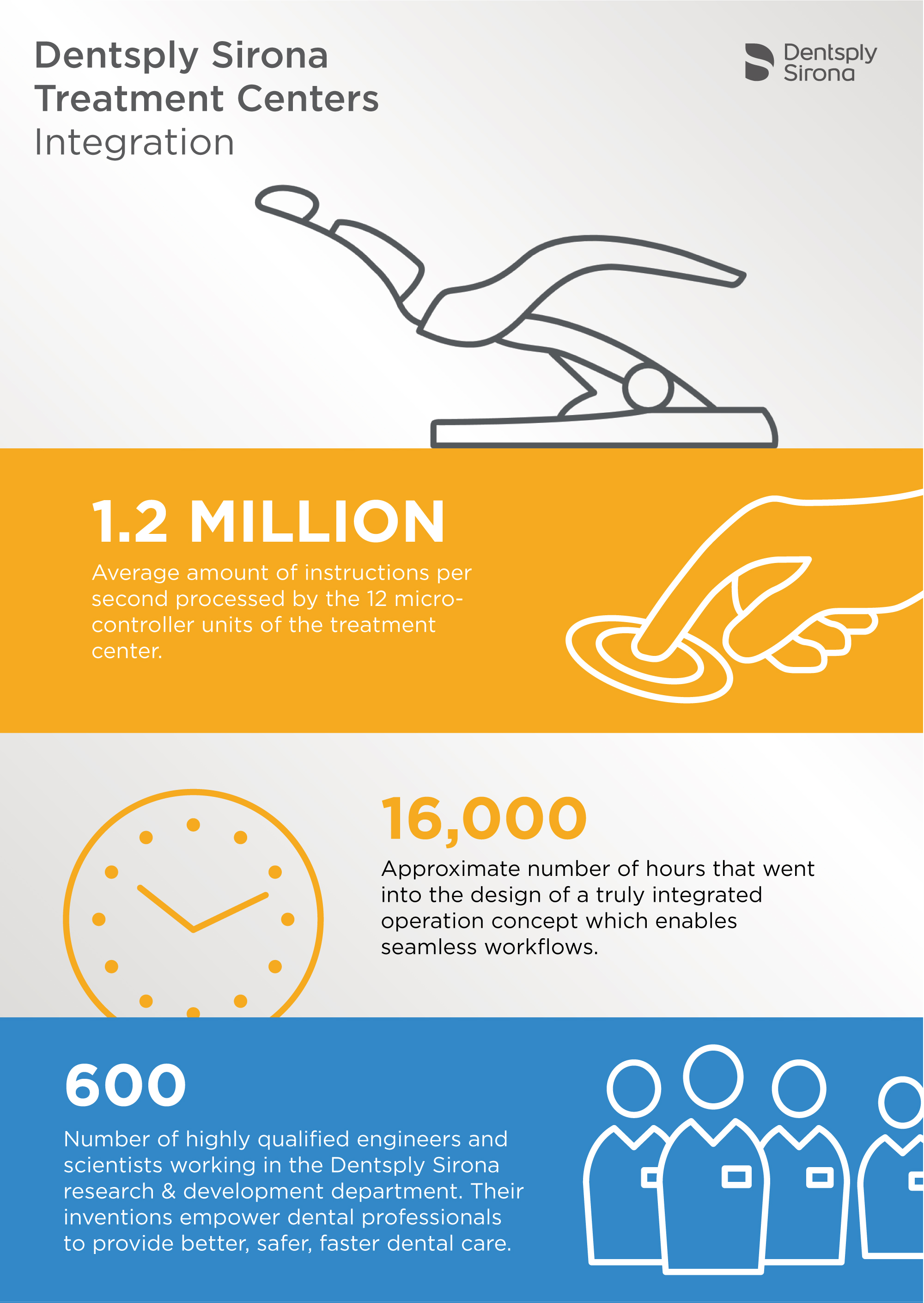 - Más de 600 ingenieros altamente cualificados de Dentsply Sirona trabajan sin descanso para desarrollar nuevas soluciones digitales y para mejorar las funciones integradas.